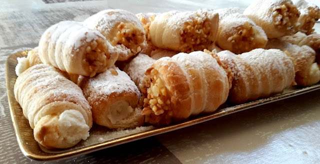 In cannoncini alla crema li ho pucciati in un poco di granella di nocciole..