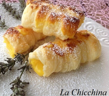 Cottura: 12/15 minuti in forno preriscaldato per i cannoncini + 7/8 minuti per la crema pasticcera