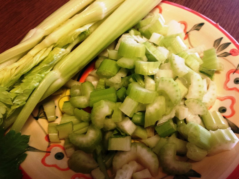 - lavare i gambi di sedano, levare i filamenti e tagliare a pezzettini