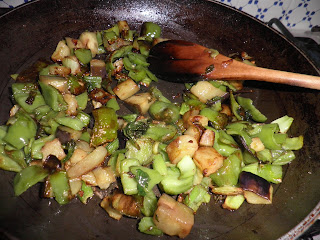 Tagliare tutte le verdure a piccoli cubetti e friggerle separatamente.