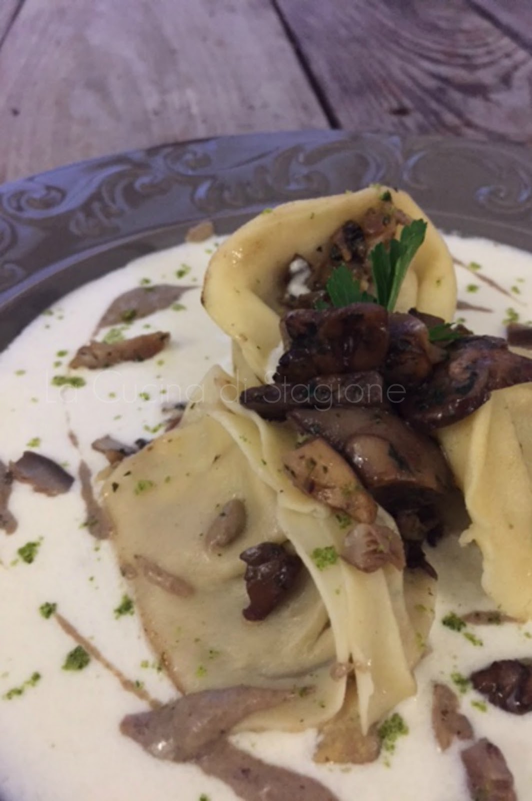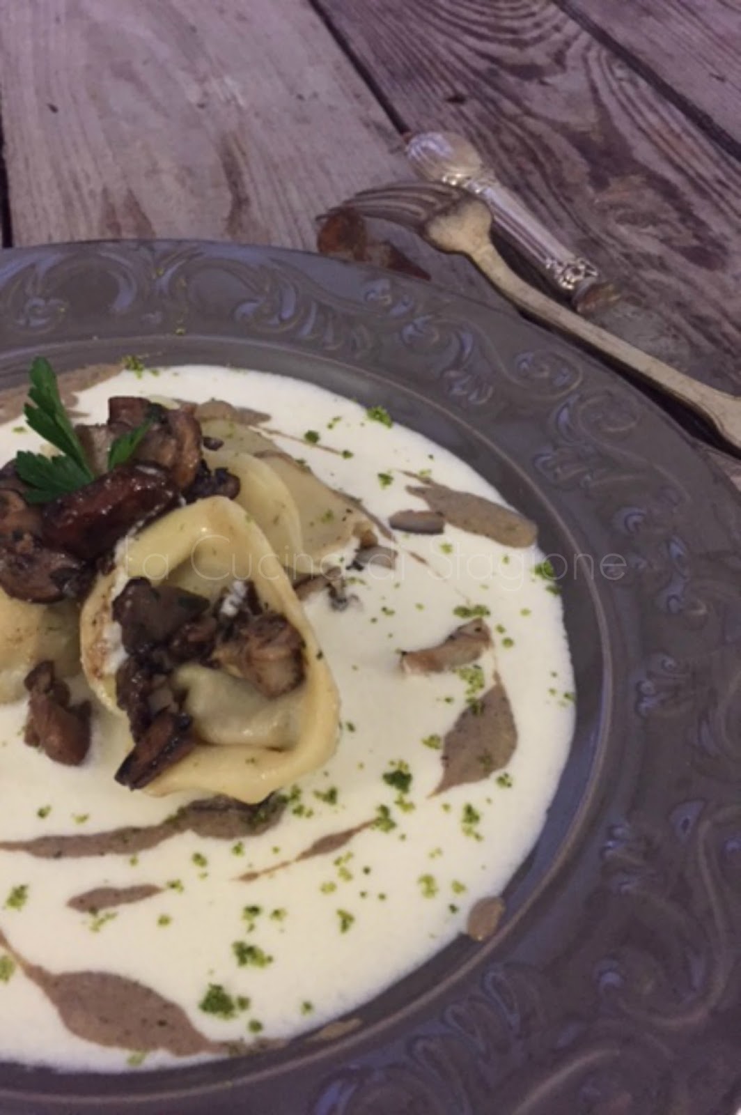 Cosa mi posso inventare? Come posso utilizzare questi avanzi e creare un primo piatto goloso e semplicemente squisito? Con un po’ di fantasia, ingegno e passione, anche una buccia di patata può diventare una squisitezza. Con questo piatto, nato in due secondi, partecipo alla campagna di sensibilizzazione promossa dalla Fondazione Auricchio in occasione del 140° anniversario, e “OSF Opera San Francesco per i poveri” per la riduzione degli sprechi in cucina. Tutti in cucina abbiamo quotidianamente degli avanzi, e perché buttarli se si posso trasformare in piatti ancora più buoni e particolari? I mie cappellacci di pasta fresca, con un goloso e appagante ripieno di polenta, funghi e formaggio, serviti su una vellutata fonduta di provolone ne sono la prova…