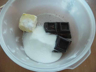 Sciogliere a fiamma bassa o in microonde il cioccolato con il burro e lo zucchero,