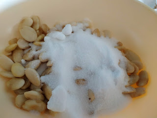 Frullate in un mixer 120 g dello zucchero con le mandorle fino a polverizzarle per bene.