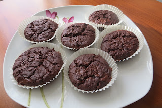 400 ml latte di cocco (1 lattina), 120 gr nocciole (o mandorle) tritate, 120 gr farina integrale di farro appena macinato, 80 gr zucchero integrale di canna, 1 bustina di lievito cremortartaro, 70 gr cacao amaro, gocce di cioccolato fondente.