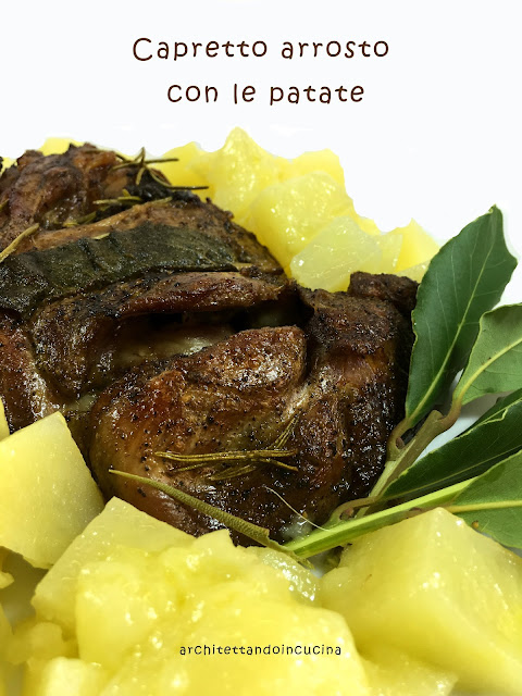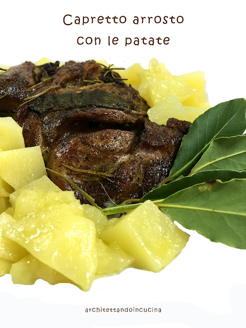 Le patate possono essere cucinate per 30 minuti nell’olio del capretto, inserendole nella stessa pirofila dopo che il vino è evaporato. Ma dato che le mie erano molte (in casa mia tutti, si litigano le patate… sempre) non mi stavano nella pirofila e quindi le ho cotte alla maniera “brutte ma buone”. In cosa consiste? Si mettono le patate a freddo con acqua, olio, sale e pepe in una casseruola dal fondo spesso, coperte e a fiamma moderata. Si lasciano cuocere finchè l’acqua non è stata tutta assorbita. Ci vogliono circa 15 minuti. Io le chiamo così, perchè quando si servono sono molto morbide e rischiano di spezzarsi e quindi di diventare molto brutte durante il servizio, ma sono molto ed adatte a tutti gli arrosti. Inoltre cuociono velocemente, e spesso sono una risorsa.