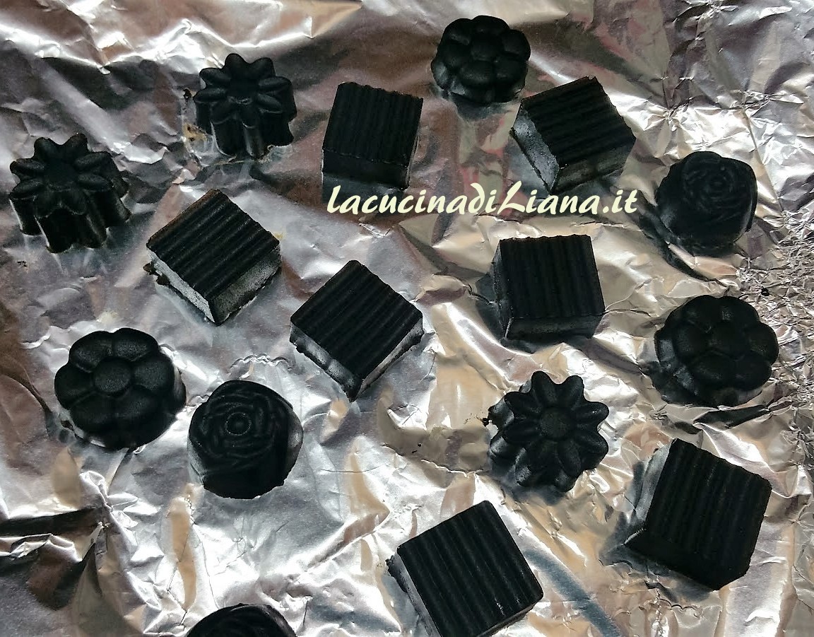 Fare le caramelle in casa non è mai stato tanto facile. Pochi ingredienti, basta sciogliere sul fuoco lo zucchero con la liquirizia, aggiungere la colla di pesce, versare negli stampini da cioccolatini e lasciar le gelificare qualche ora in frigo.