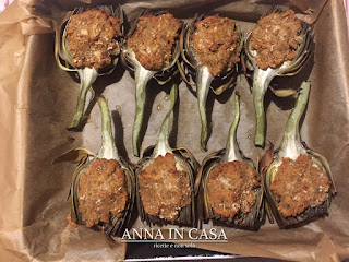 Farcire i carciofi, cospargerli con altro formaggio grattugiato, un filo d’olio e