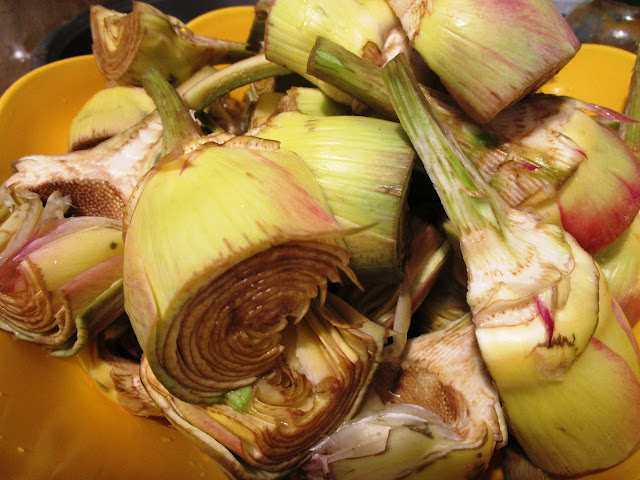 -Pulire i carciofi togliendo le foglie esterne e tagliando le punte