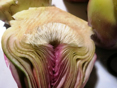 Ecco i carciofi pronti per essere tagliati in verticale..
