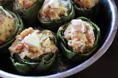 La ricetta che vi propongo oggi è quella di mia mamma: lei li farciva e li cuoceva lentamente in padella e, da ultimo, li passava sotto il grill del forno affinché in superficie si formasse una deliziosa crosticina.