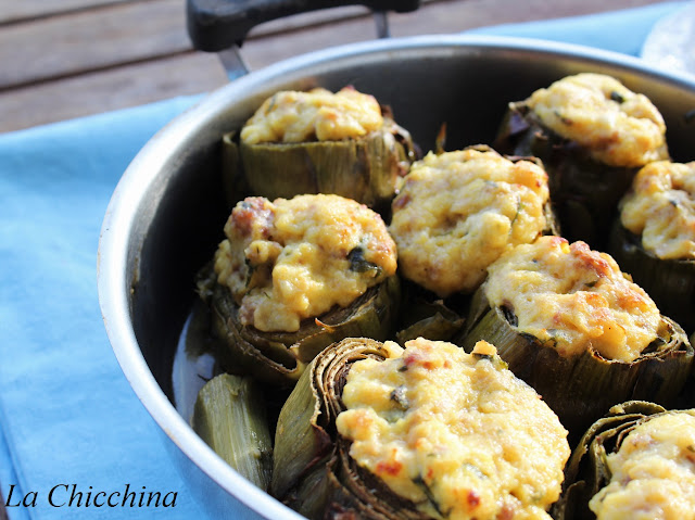 Servire caldi o tiepidi… Ecco pronti i nostri carciofi ripieni. Un piatto del cuore per me…