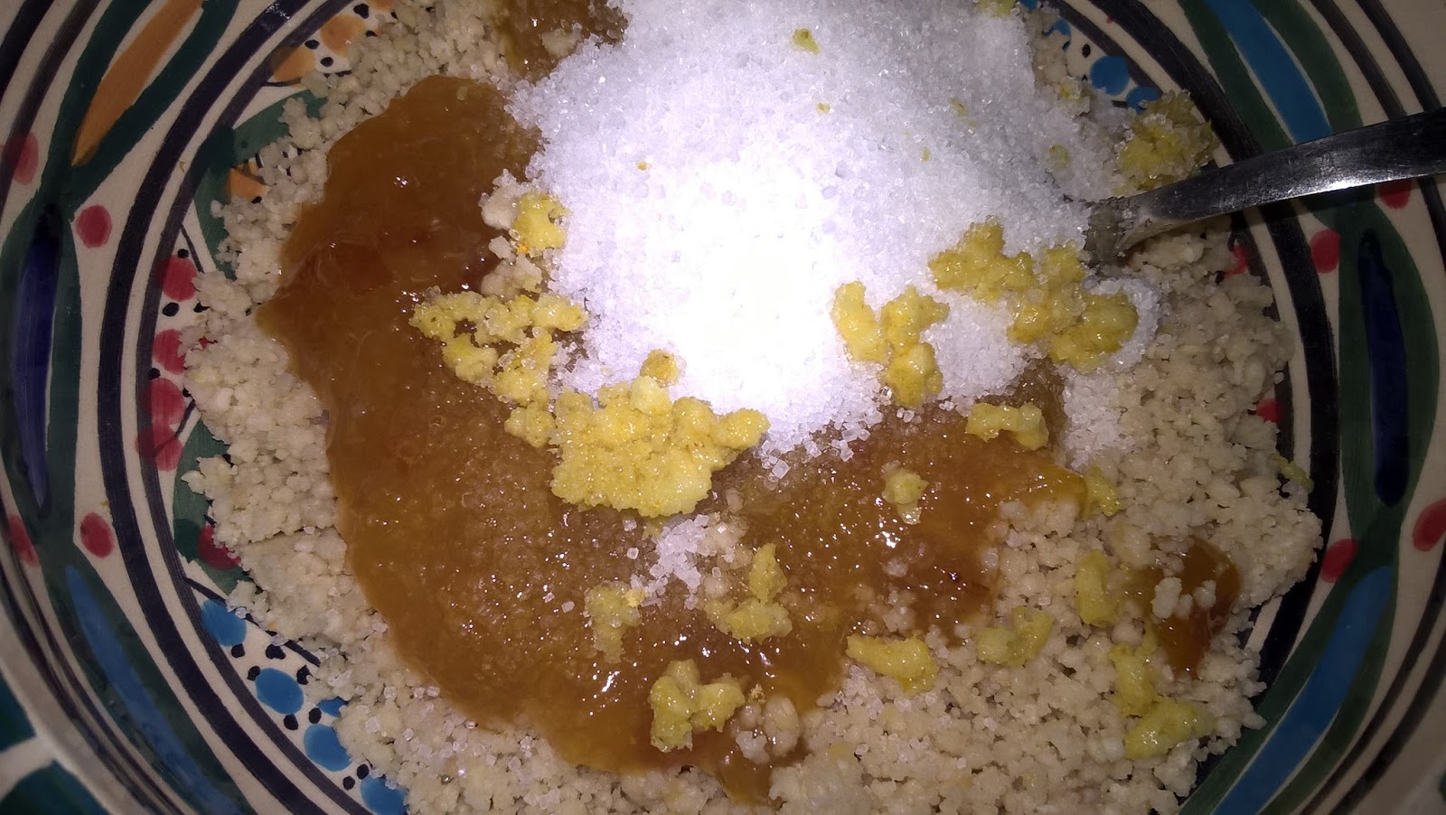 per il ripieno: g 100 di marmellata (cotogne o arancia), g 400 di mandorla bianca tritata, g 200 di zucchero, cannella, limone grattugiato.