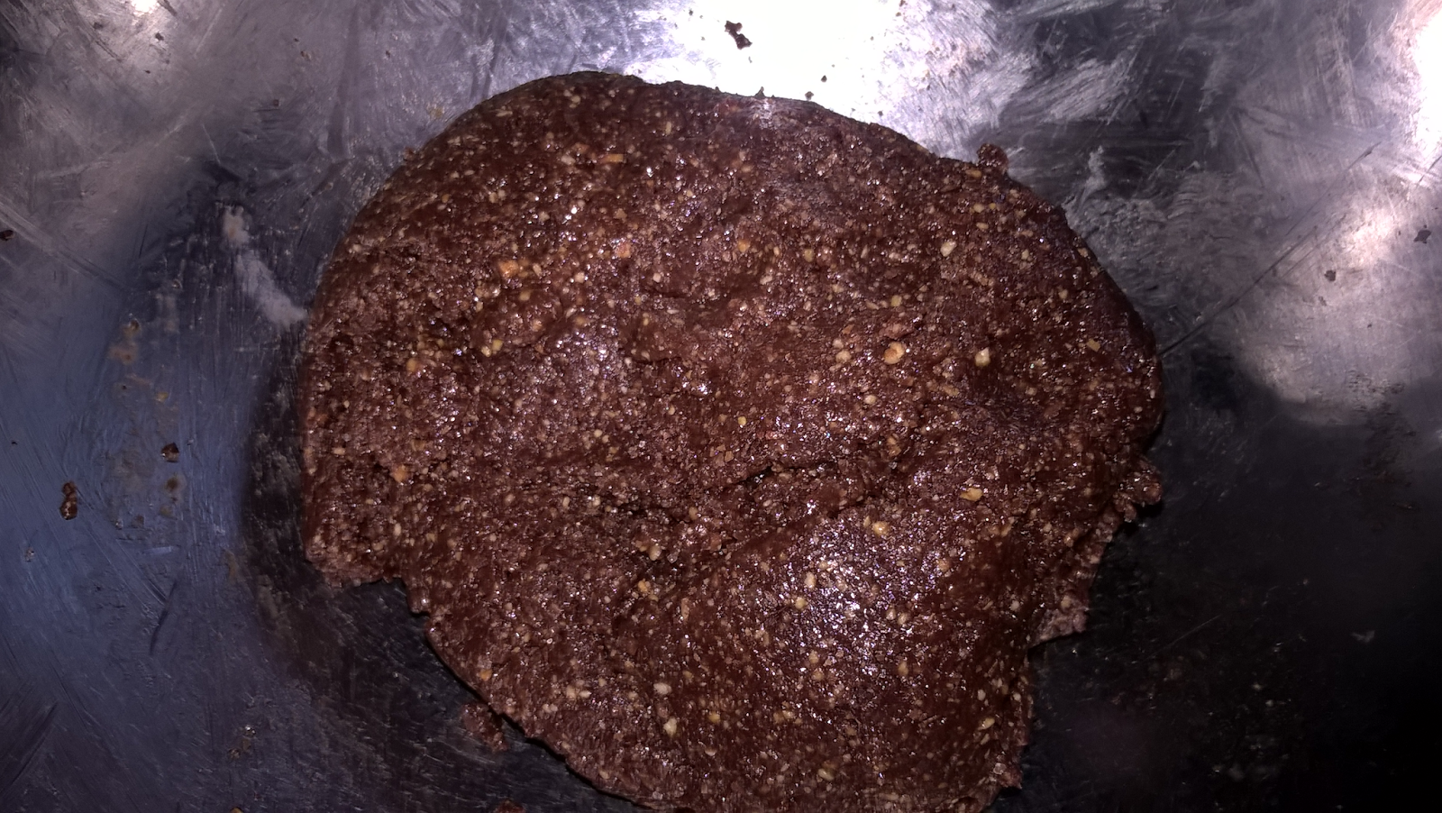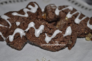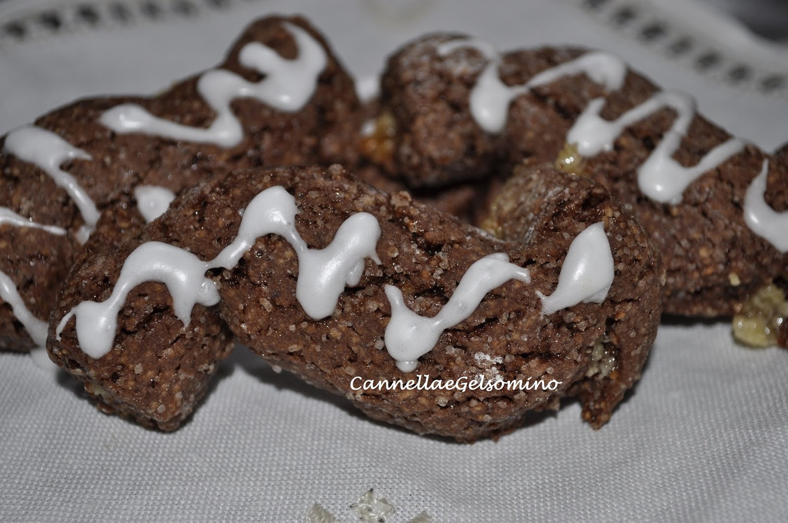 “kg 1 di mandorla abbrustolita, Kg 1 di zucchero, Kg 1 di farina 00, g 100 di cacao, 3 uova, cannella;