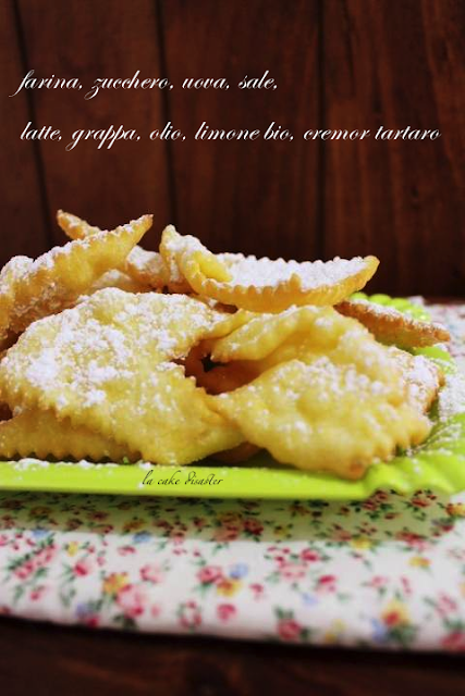 Il Carnevale…quanto mi piaceva da piccola questa festa…la preferivo anche ad il Natale…eh si per le maschere, i coriandoli e soprattutto per il trucco!!! Eh si …era l’unico periodo dell’anno dove potevo usare i trucchi ed ero la bambina truccata nel modo migliore di tutte le altre maschere (grazie alle mie vicine di casa!!!!). Per tutto il periodo delle elementari ho sempre indossato la stessa maschera “la spagnola”…perchè mi piaceva tantissimo e poi ero sempre piccolina e mi stava sempre bene e non lo volevo cambiare, pensate che ancora lo tengo nell’armadio…!!! Una bambina bionda con la maschera da spagnola..conservo gelosamente anche le foto…!!!! E le frappe erano il mio dolce preferito del carnevale, ma solo quelle che faceva la mia mamma…morbide e bianche ma nello stesso tempo croccanti. Finalmente sono riuscita a rubarle la ricetta, è molto gelosa della sua agenda…ma alla fine ho vinto io!!! Ho solo fatto una piccola modifica…un cucchiaio di grappa della zia…variante che orami che sono cresciuta si può aggiungere….
