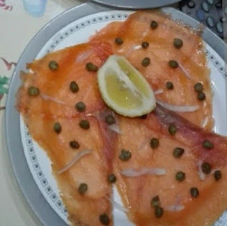 Oggi vi propongo un antipasto di pesce velocissimo: il carpaccio di salmone. mai preparazione di un piatto fu più veloce! Basta davvero togliere il salmone dal suo involucro, metterlo a marinare qualche minuto e il vostro antipasto di pesce è già pronto. Oltre ad essere un piatto semplice e veloce, è anche molto buono. Il salmone affumicato ha quel sapore così spiccato capace di conquistare chiunque. L’aggiunta del limone è in grado di esaltarne il gusto oltre che di “cuocere” il pesce rendendolo sicuro da mangiare.