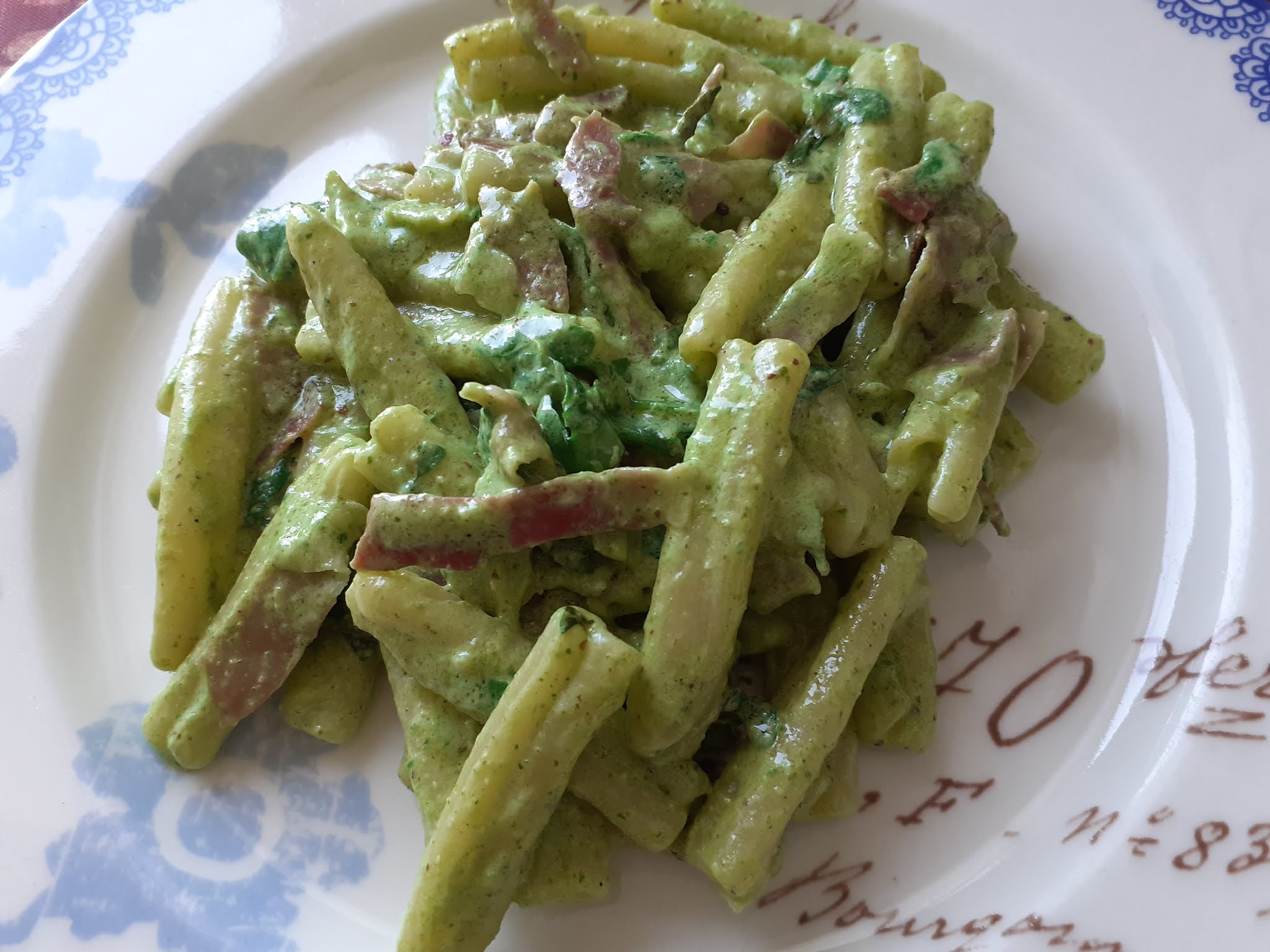 Tortiglioni con cipolla, speck e zucchine