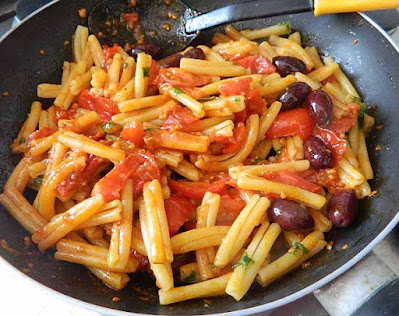 Un primo piatto sicuramente gustoso anche grazie alle Olive Nere Kalamon delle Olive Ficacci.