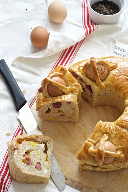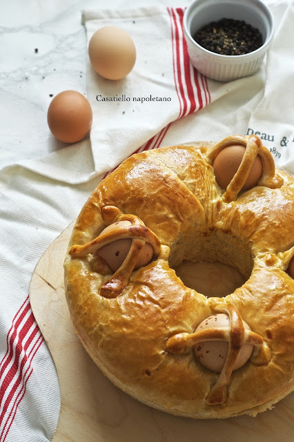 Il casatiello, una torta rustica ripiena di salumi e formaggi, molto sostanziosa, buonissima sia calda che fredda e ideale per la gita fuori porta di Pasquetta.