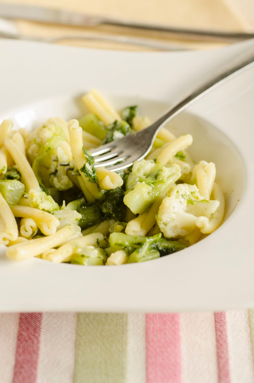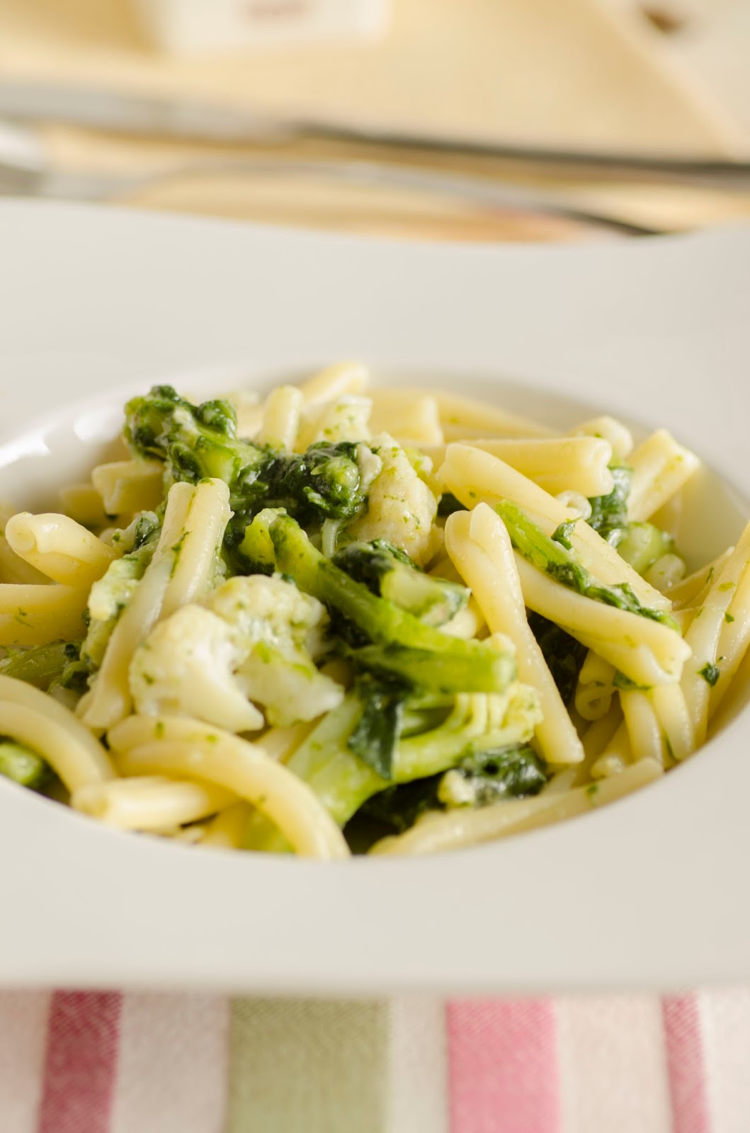 Ed ecco quindi un piatto di casarecce con il broccolo di Bassano, veloce, facile , visto che l’ortaggio si cuoce insieme alla pasta (10- 11 minuti circa), ma dal gusto raffinato.