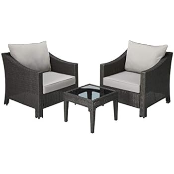 Christopher Knight Home 296065 Caspian 3 Piece Grey Outdoor Wicker Furniture Chat Set