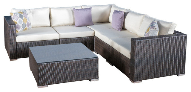 Gdf Studio 6 Piece Francisco Outdoor Wicker Sectional With Cushions Brown Set