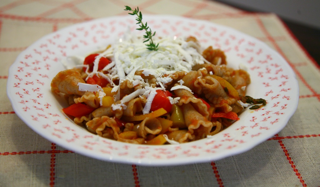 Per questo motivo ho preparato un semplice sugo rosso con peperoni grigliati, aromatizzati al timo e esaltati dalla ricotta salata.