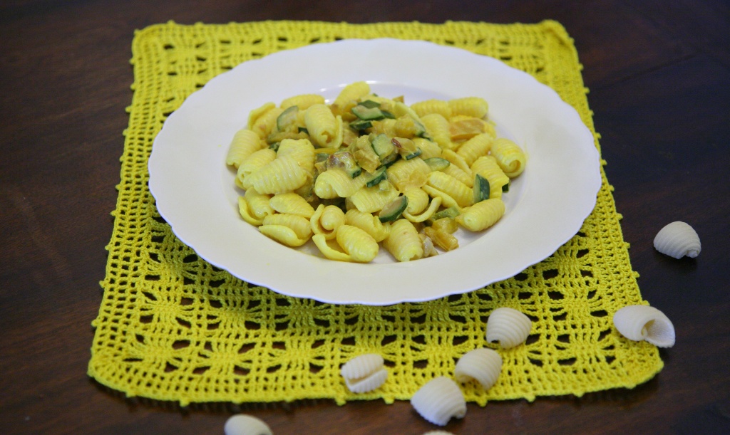 Questa è la settimana vegetariana e quindi anche la pasta segue questa linea con un bel ragù di verdure. Per renderla un po’ diversa ho pensato di aggiungere lo zafferano e la robiola che donano una bella cremosità al piatto.