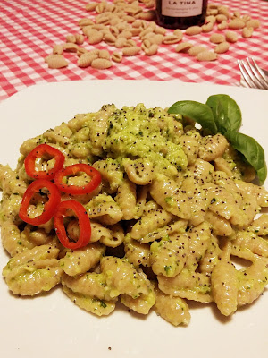 Per esaltare al meglio questa pasta ho pensato ad un sugo semplice ed estivo. Le zucchine sono tra i miei ingredienti preferiti, ma sapete che non mi sarei mai limitata ad un condimento troppo banale! E così due delle mie zucchine si sono unite ad un ottimo olio extravergine d’oliva, Grana Padano e basilico, diventando un pesto per i cavati. Non contenta ho aggiunto un tocco piccante e una spolverata di semi di papavero. Il risultato lo vedete nelle foto, e se proverete la mia ricetta lo sentirete in bocca: per chi ha cenato con me è stato amore a prima vista!