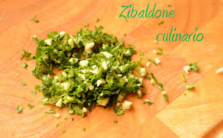 Scaldare l’olio aggiungere il trito (l’aglio si può evitare di tritare e successivamente toglierlo), rosolare per qualche minuti.