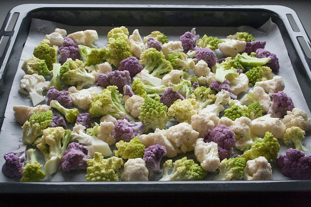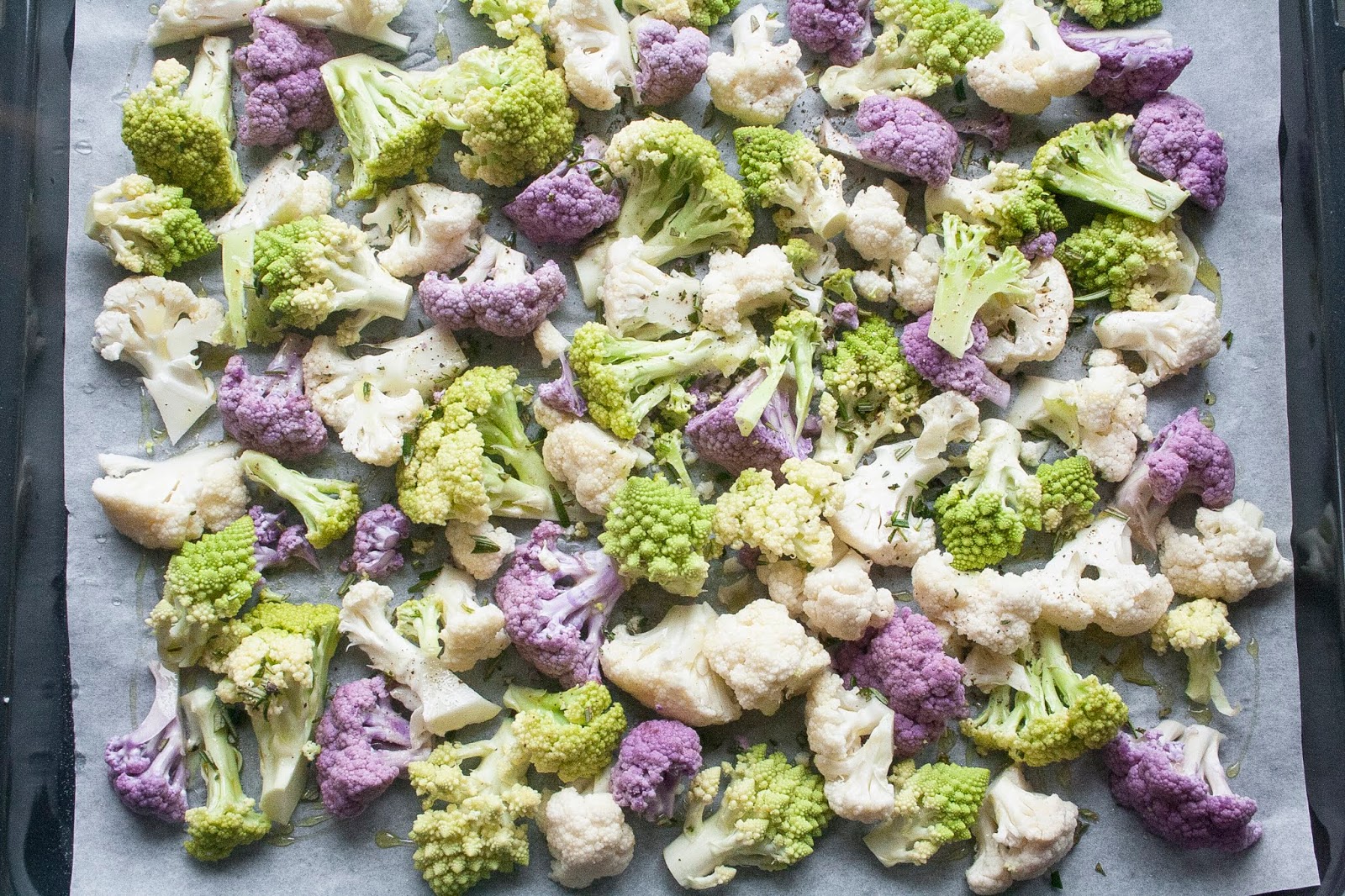 - 700 g di rosette di cavoli colorati (cavolo bianco, cavolo viola, cavolo verde e cavolo romanesco)