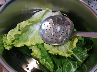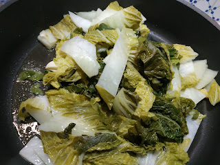 Ho aggiunto le foglie di cavolo facendo insaporire.