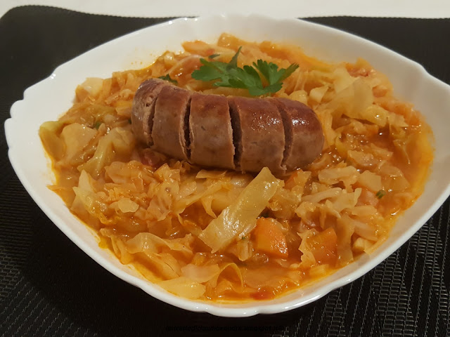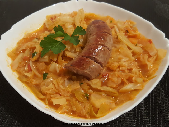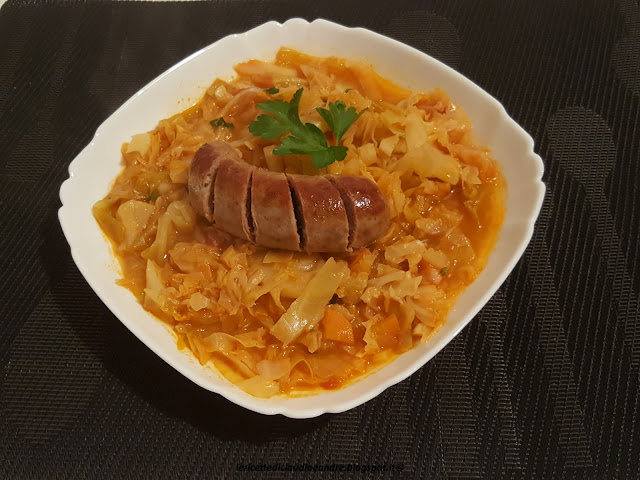 - Una volta pronto sia il cavolo che la salsiccia, portare in tavola se impiattare mettendo nei piatti del cavolo e un pezzo di salsiccia.