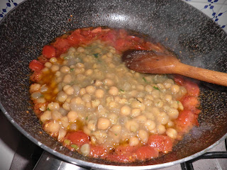 Aggiungete i ceci che avrete fatto lessare in acqua e una foglia di allora finchè siano diventati morbidi ma non spappolati ( 100 g per persona).