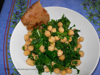Cuocere i ceci per 2 ore, dopo averli tenuto in ammollo per una notte. Lavare e tagliare le cime di rapa e cuocerle al vapore. In padella aggiungere un filo d’olio con l’aglio tritato ed un po’ di peperoncino, ripassare pochissimi minuti le cime di rapa ed aggiungere anche i ceci senza acqua di cottura. Aggiungere un pizzico di sale e portare in tavola.