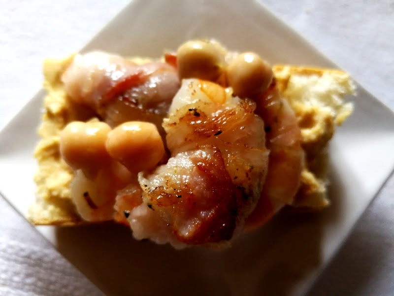 Ora con velocità farcire i tranci di baguette e decorarli con qualche cece lasciato da parte…