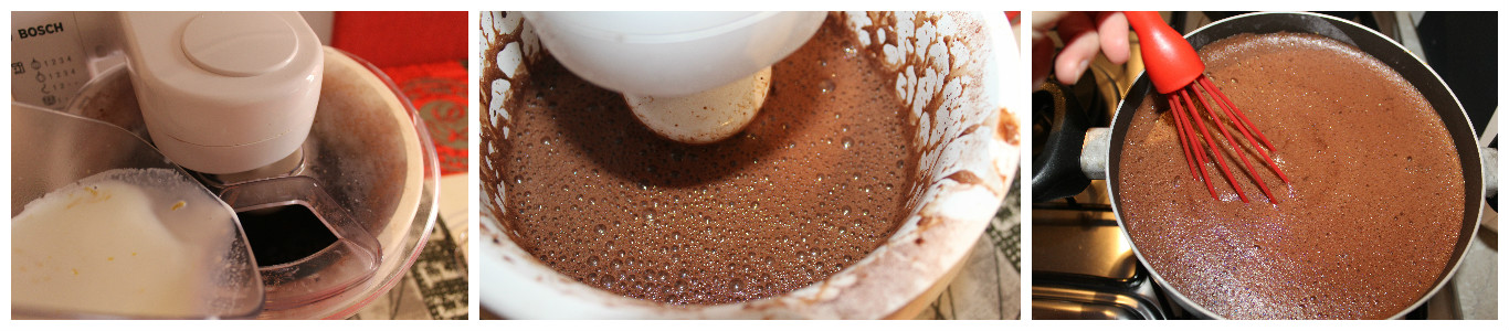Con la planetaria in movimento, versate il latte a filo nella preparazione, alzate la velocità e lavorate finché non otterrete un composto liscio ed omogeneo. Trasferite di nuovo tutto nel pentolino e sempre mescolando con una frusta, fate addensare la crema, non ci vorrà molto l’importante è non smettere mai di mescolare per evitare la formazione di grumi.