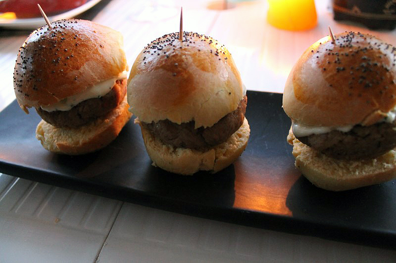 Mini hamburger di quaglia con maionese di uova di quaglia al wasabi