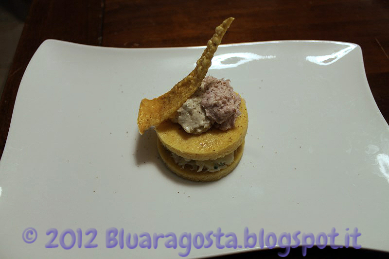 Polenta e baccalà alle due mousse con chips di polenta soffiata