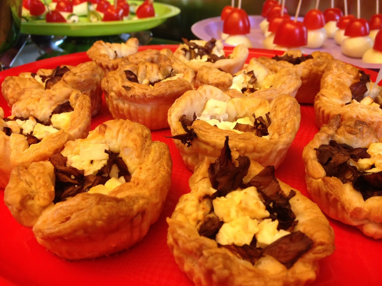 Ricavate dei cerchi dalla pasta sfoglia e mettetela nei contenitori in silicone per muffin. Riempiteli di radicchio rosso tagliato piccolo e feta sbriciolata. Cuocete a 180° per circa 25/30 minuti.