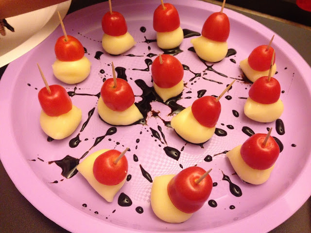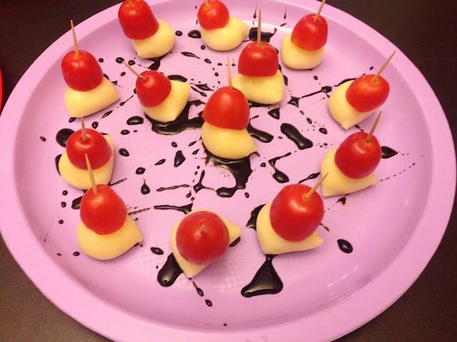 Senza Bimby, Stuzzichini di Formaggio Tipo Mozzarella e Pomodorini con Salsa Balsamica