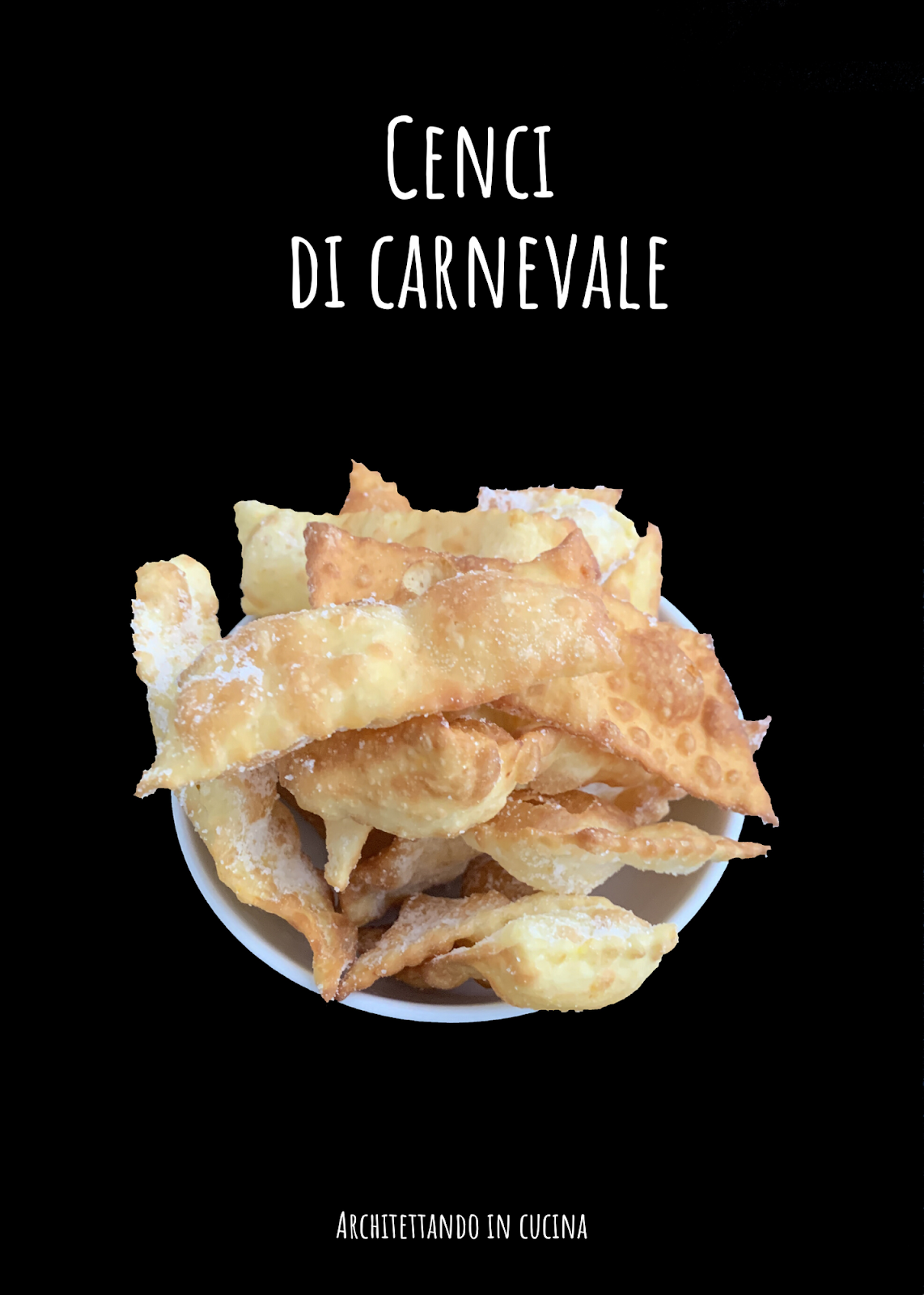 I cenci di Carnevale, sono una variante toscana di dolci fritti che tradizionalmente invadono la nostra penisola in questo periodo, magari però li sentirete chiamare “chiacchere”, “lattughe”, “crostoli”, “frappe”, “sfrappole”, “cioffe”, “gale”, oppure “maraviglie” in Sardegna. Le differenze sono soprattutto negli aromi o nei liquori usati nella ricetta, oppure nella forma, ma la sostanza resta quella.