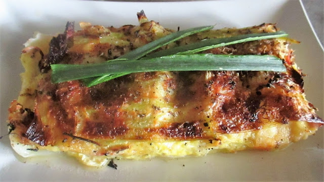 Then you put on top of them the raschera cheese and ham, 2 tablespoons breadcrumbs. Finish by covering with the remaining leeks and poured over the mixture of egg yolks and milk. Finish by covering everything with the advanced breadcrumbs, grated Valgrana, chervil, grated truffle and the butter flakes.
