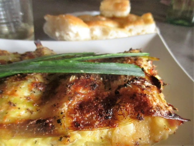 Grease a baking dish large enough oven and place on half of the leeks.