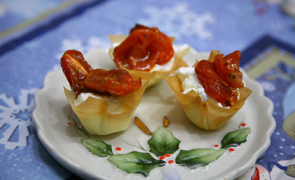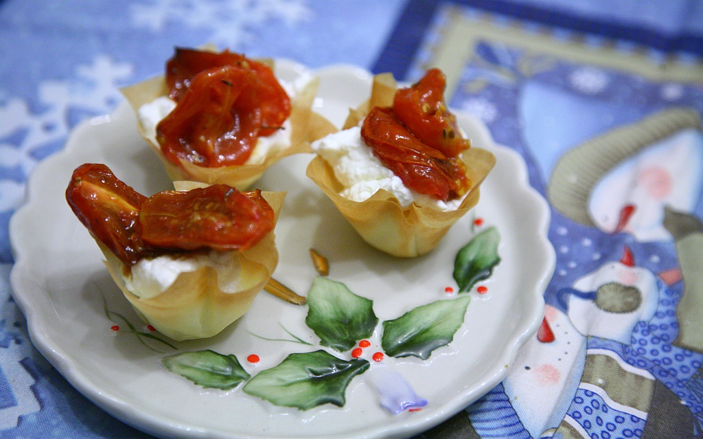 I cestinetti di fillo si adattano a qualsiasi ripieno, ma con la crema di burrata e i pomodorini al forno sono una bomba di gusto.