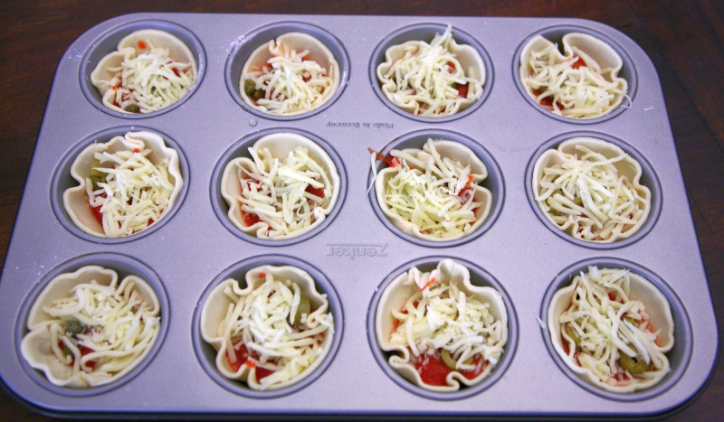 Inserire la pasta in una teglia da muffin e bucherellare con i rebbi di una forchetta.