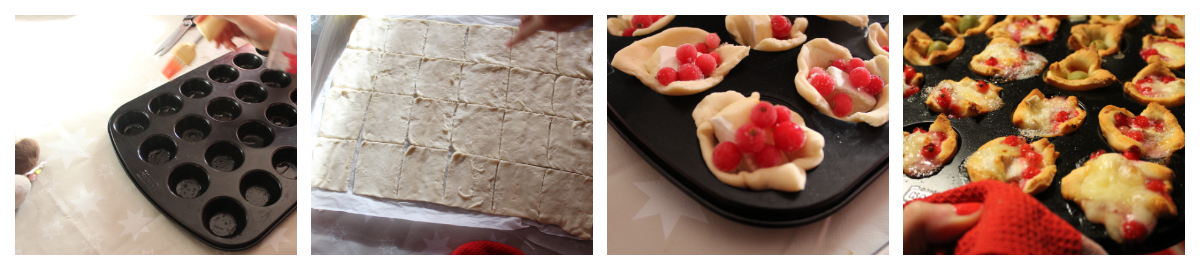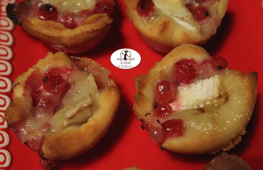 Tagliate il formaggio a cubetti piccoli e suddividetelo all’interno dei cestini, per ultimo aggiungete il ribes, circa 7/8 bacche per porzione. Infornate e cuocete per circa 12/15 minuti.