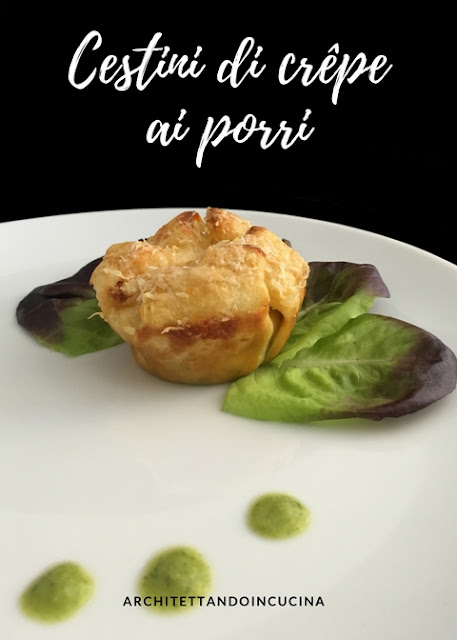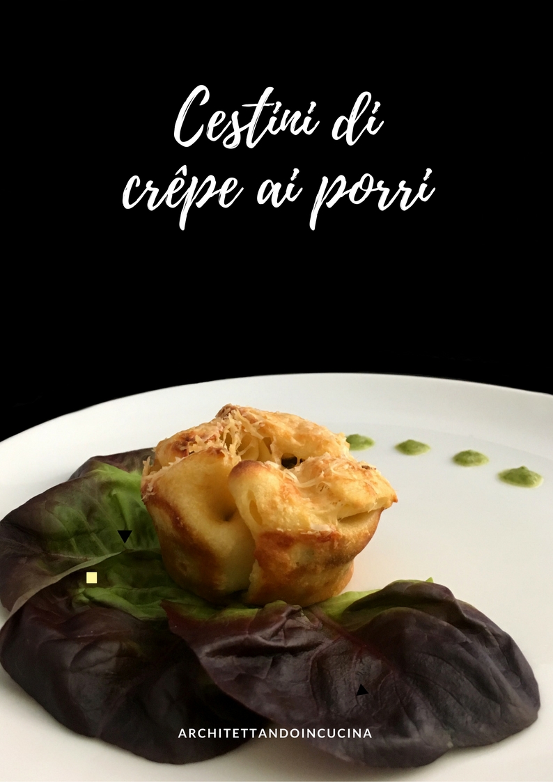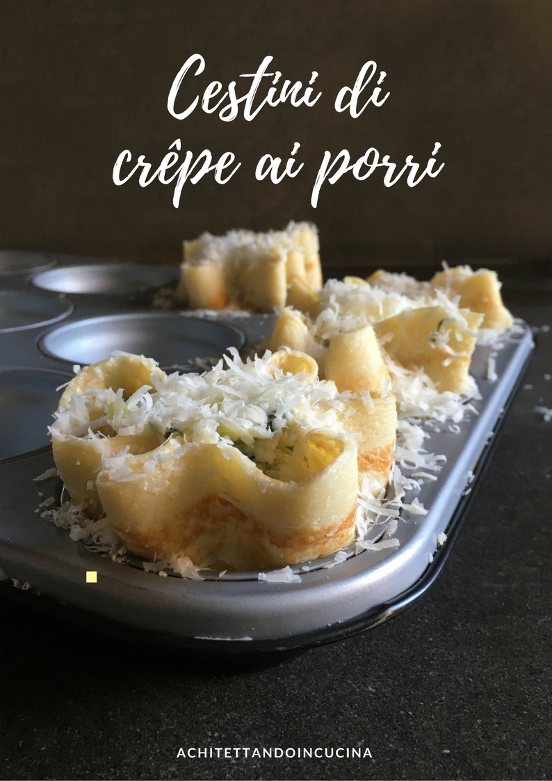Così inizio il 2018 con una ricetta che viene dal nostro mitico libro “Crêpe is the new Black”. A pag. 152, Fabiola Palazzolo del blog Olio e aceto , ci incanta con i “Cestini di crêpe alla salsiccia”. Però adesso sono a dieta, quindi ne ho fatta una versione molto meno calorica, ma buonissima. Io l’ho servita come antipasto, ma aumentando le dosi, può trasformarsi in un ottimo primo piatto.