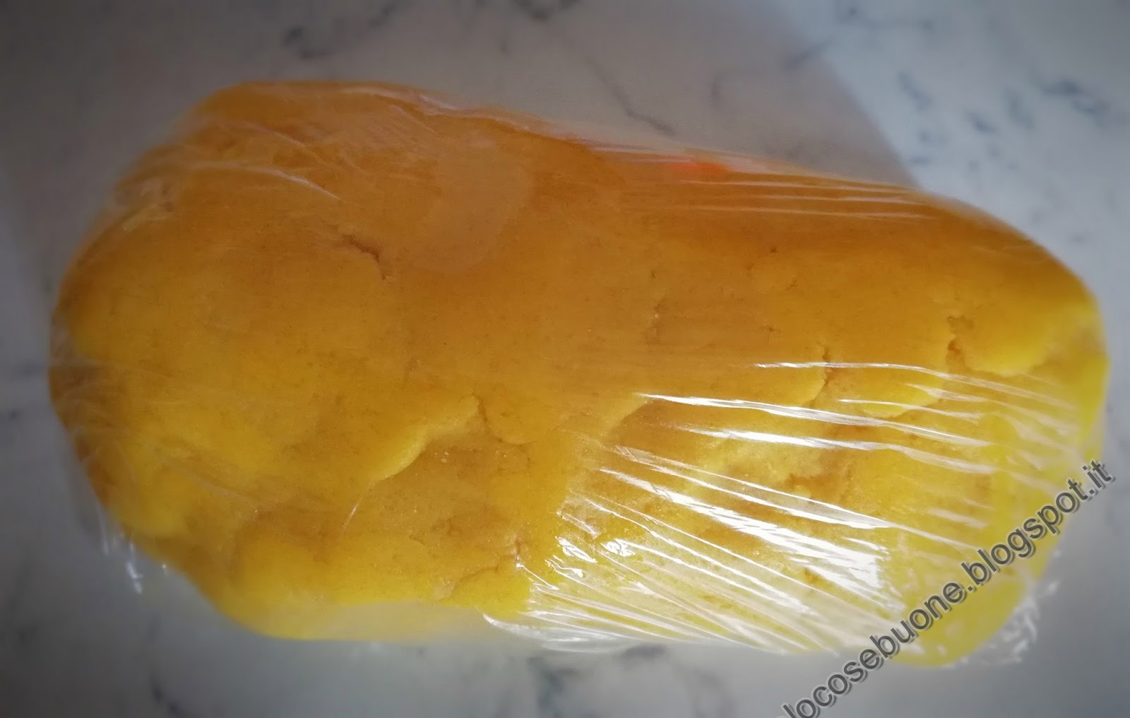 Adesso prendiamo la pasta frolla, la avvolgiamo con uno strato di pellicola e la facciamo riposare in frigo per 1/2 h circa.