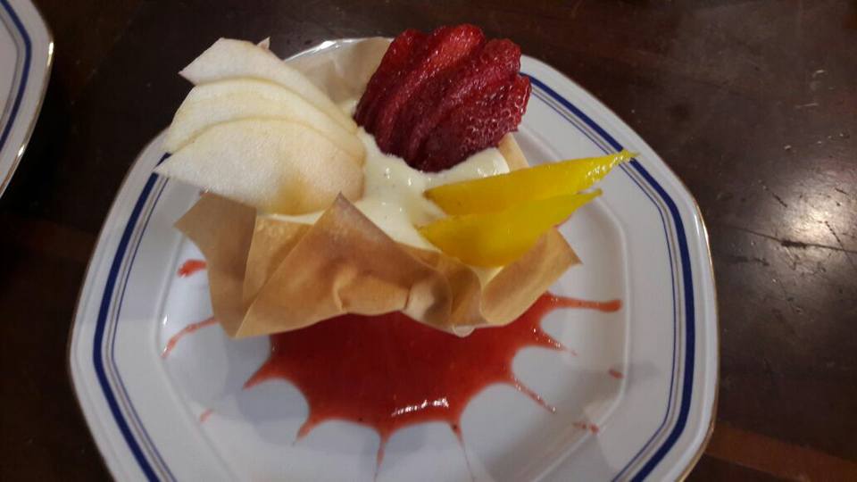 INGREDIENTI: PASTA FILLO BURRO FUSO CREMA CHANTILLY FRUTTA FRESCA A PIACERE Preparare i cestini di pasta fillo: tagliare la pasta a quadrati, spennellarla con burro fuso e sovrapporli 2 / 3 strati sfalzati in un pirottino usa e getta di alluminio, mettervi sopra un altro pirottino e dare la forma ai cestini. Cuocerli in forno statico a 180° C. per 8 minuti circa togliere il pirottino e continuare la cottura per altri 5 minuti. Metterli delicatamente da parte. Al momento di servirli, riempirli con crema chantilly e frutta fresca a piacere. Sono una bontà.