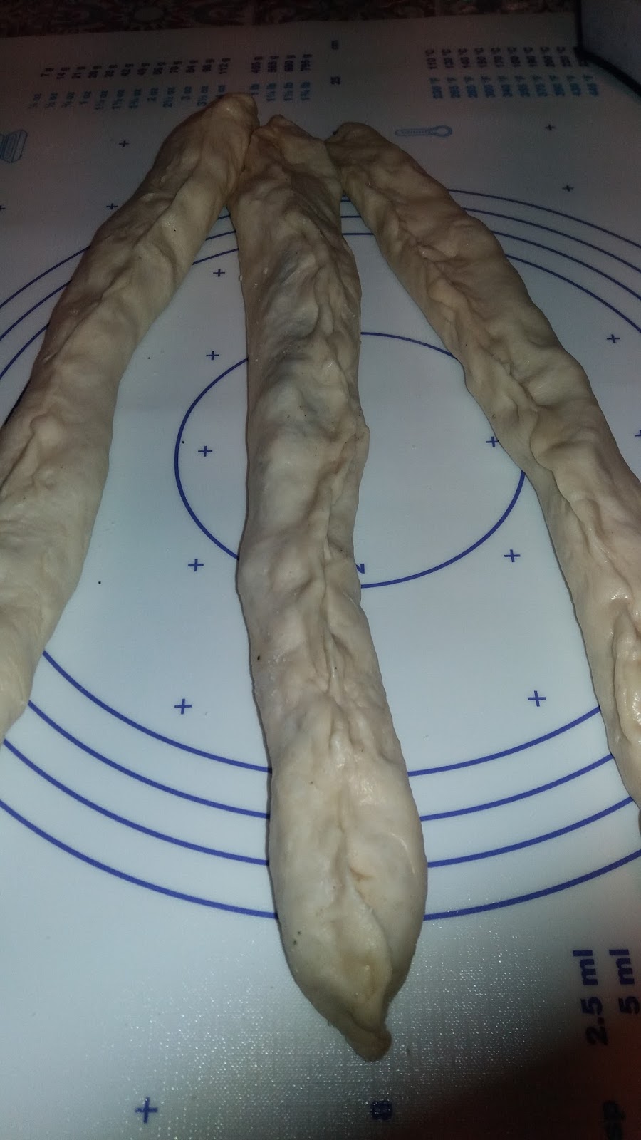 A lievitazione avvenuta riprendere l’impasto e formare le varie trecce (IO ne ho fatte 3)